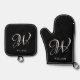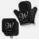Initial Personalised Elegant Black Monogram Oven Mitt & Pot Holder Set
