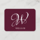 Initial Personalised Elegant Burgundy Monogram Business Card