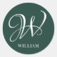 Initial Personalised Elegant Emerald Monogram Classic Round Sticker