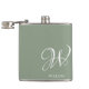 Initial Personalised Elegant Sage Green Monogram Hip Flask