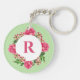 Initial Pink Rose Red White Petunia Polka Dots Key Ring