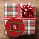 Initial Red and Green Plaid Simple Design Tree Decoration Card