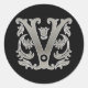 Initial V Round Sticker in silver