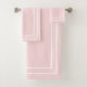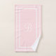 Add your initial, initials, or name to this soft pink towel set. Choose from four different colours. Matching shower curtain and bathmat available.