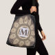 Attractive range of bags with custom initials on a patterned background of psychedelic mandala.
