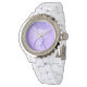Adorn your wrist with timeless elegance using this women's rhinestone white enamel watch. Featuring a personalised initial monogram in purple with dazzling purple glitter, this watch adds a touch of sparkle and sophistication to your everyday style. Perfect for those who appreciate a blend of functionality and fashionable flair.