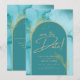 INK Abstract Turquoise Teal Gold Wedding Save DATE Invitation