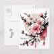 Greeting card for the Vietnamese New Year with the pink blooms of the Hoa Dao decorated with paper and tassels.