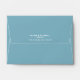 An abstract background reminiscent of liquid ink in shades from from deep teal through cyan and white is the backdrop for elegant handwritten script text and modern design layouts in the pieces of this beautiful wedding suite. The coordinating envelope shown here features the above abstract interior and a solid, light teal exterior with a template to add your names and address. Search ID762 to see all the coordinating pieces in this set.