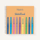 A fun light orange sketchbook for kids with the doodle of pastel ink pens . Personalised it with the child's name using the template . You have the option to choose between a soft or hardcover . This design is also available in black and teal .