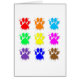 A colourful pattern of dog paw prints with ink splatter effect.
