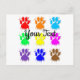 Ink Splatter Dog Paw Pattern Custom Text Postcard