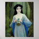 Ink Wash Illustration of Beautiful Woman in Woods Poster