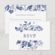 This lovely and stylish botanical wedding response card features trendy blue ink leaves on a white background, and a spot for your guest's choice of entrees.
