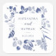 These lovely and stylish botanical wedding stickers feature a trendy frame full of blue inked leaves on a white background.