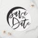 Inky script save the date monochrome save the date wedding invitation. Black and white but background colour can be changed.