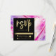Inky Splash Pink Marble with Gold foil Painted Alcohol Ink background texture, gold foil look veins and streaky lines, and lots of cells and dots. A super trendy ultra Modern Luxe Look for any season, with bright colourful colour palette : Black, hot pink, blush pink, magenta, purple, White, and gold, with a chic brush Script lettering Font - Personalised Wedding RSVP Cards!