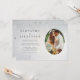 Choose this unique minimalist wedding invitation template featuring a sleek, classic lettering and one of your favourite engagement photos in an oval frame on a delicate, light silver floral background.