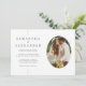 Choose this unique minimalist wedding invitation template featuring a sleek, classic lettering and one of your favourite engagement photos in an oval frame on a delicate, simple white background.