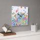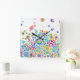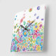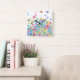 I love the look of this clock, this is one of my favorite art designs of late. Catherine Holcombe is the bomb! My only "complaint" about this clock is that it does not hang flat - because the hanger opening is in the center of the back, it leans forward. it would be better in my opinion if a separate hanging piece was adhered at the top of the clock in back. We are hoping we can find a way to adapt it so that it does hang flat. Otherwise, i love it! We did not have a custom print done, but the design itself is gorgeous!