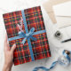 Gift wrap with the tartan for Clan Innes and its septs, including Mitchell and Wiley. Elaborate Scottish plaid pattern from 1951 in bright red with blue, white, blue, green and yellow accents.