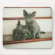 Mousepad with my original photo of two blue-grey kittens sitting together on a stair step. They both wear the sweet, innocent expressions so typical of kittens that make the heart melt. We rescued these two precious babies years ago from a shelter.