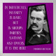Purple background with picture of the German philosopher, Friedrich Nietzsche.To the left is a quote of his regarding insanity. "In individuals, insanity is rare; but in groups, parties, nations and epochs, it is the rule"
