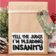 "Tell the judge I'm pleading insanity". See my store for more items with this print.