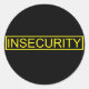 "Insecurity" A word play in the same style as the yellow text on the back of a security guard’s black shirt.