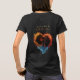 Abstract light-and-dark design of a dancer within a heart shape. On the front the heart design is placed over your heart. On the back is a larger version with an inscription over it that reads "Inside me beats the heart of a dancer".