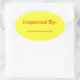 These oval product inspection labels have a yellow background with "Inspected By:". These stickers are coloured for high visibility. Just peel and stick. These labels are perfect for large and small businesses. This design can be purchased as is or you can use it as a template to make your own unique design. Other shipping/warning labels and designs are offered.