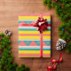 Inspiration is a funky pattern in yellow, pink, blue and white colourful stripes and blue, yellow triangles.