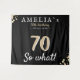 Inspirational 70th Birthday Party Black Backdrop. Funny and inspirational quote 70 so what for him or for her. Use the tapestries as a backdrop for the 70th birthday party. Personalise it with your name, date and age.