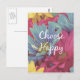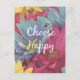 Inspirational Choose Happy Quote Affirmation with colourful daisies background (pink, blue, yellow). Motivational choose happy quote to keep you inspired and positive.