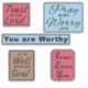 Five inspirational stickers in one. Trust in the Lord, Pray more worry less, You are Worthy, It is well with my soul, Jesus loves you.