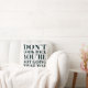 Modern block quote decorative pillow, Don't Look Back You're Not Going That Way. Minimalist black typography set on a white backdrop on both front and back.