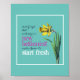 A teal floral print inspirational message: don't forget that each day is a new beginning and a chance to start fresh. Perfect for an office space or living room.