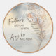 Here's a pretty round sticker with inspirational messaging: "Feathers appear when Angels are near" coupled with a lovely, natural muted watercolor feather design. Add these to envelopes, gifts, or anything else where someone needs a few words of encouragement.