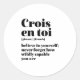 Crois en toi. Believe in yourself. Inspirational and motivational French quote design for those who love the beautiful and romantic French language. Cool dictionary definition style merchandise mixed with witty sarcasm and light humour. Who says you can't be funny, chic and cool while inspiring others with this insightful words and life sayings. Great souvenir, Christmas gift and birthday present for those who dream of travelling to Paris and fall in love on the Eiffel Tower.