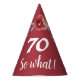Inspirational and funny burgundy floral 70th birthday party hat. Inspirational text 70 so what is a modern white script and is perfect party hat for someone celebrating the 70 years and has a sense for humour. The design has beautiful watercolor red roses and twigs and a dark red background and is perfect for a woman`s 70th birthday party. You can change the age number if you want.