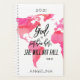 Inspirational God Is Within Her Name Pink World Map -This custom pink watercolor inspirational and modern planner features your own name between the words of the Bible Scripture quote, "God is within her, she will not fall," from the book of Psalms, on a World Map in modern pink watercolor. This is the perfect planner for the New Year and for the God lover and Jesus follower who is a world traveller, missionary, or loves mission work.