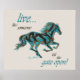 Brighten Your Home with this Unique "One Of A Kind" Horse Poster. It Features a Galloping Horse Silhouette in Turquoise, Black & Gold and the Inspiring Words..."LIVE LIKE SOMEONE LEFT THE GATE OPEN"!