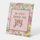 Inspirational "Do what brings you joy " quote on pink and white polka dot background with pink and purple floral frame.