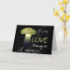 This design features my close-up photograph of a glowing ceramic solar mushroom with water drips on a dark evening with an inspirational message "If you LOVE what you do it shows!" The inside offers a line of template text that you easily change or keep for any special occasion. You can also remove the inside greeting leaving room for a handwritten note. You can also put the postcard into a frame with a mat as a gift idea. Design & Photograph ©Patricia AZ Phillips