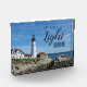 Add this stylish inspirational lighthouse photo block to your table, desk, or mantel. The photo is of the famous Portland Head Lighthouse in Maine, with the inspirational bible verse “Let your light shine.” If you would like this design on other products, please message me.