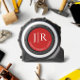 This tape measure saying immeasurable love - has a minimal red and white design featuring names initials | monogram on a simple red background.