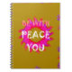 This artwork prominently features the phrase "Peace Be With You" displayed in the center. The text is stylized and surrounded by a decorative floral border, creating a balanced and symmetrical composition that draws the eye to the uplifting message. A solid color background provides a clear contrast, enhancing the overall design.