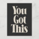 Make a bold statement with this stylish "You Got This" postcard! Featuring classic typography in a striking black-and-cream design, this card is a perfect way to send motivation and encouragement. Whether you're supporting a friend, decorating your workspace, or adding an empowering touch to your day, this minimalist yet impactful design delivers confidence with every glance.
