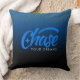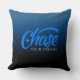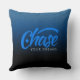 Add a touch of inspiration to the bedroom or living room with this pillow, which features the uplifting words/advice "Chase your dreams", rendered in a combination of handwritten and elegant serif lettering on a royal-blue-to-black gradient background.