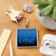 Offer inspiration with this keychain, which features the uplifting words/advice "Chase your dreams"", rendered in a combination of handwritten and elegant serif lettering on a royal-blue-to-black gradient background.
